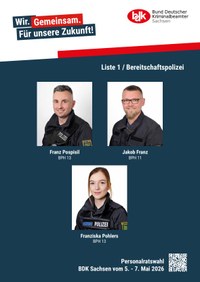 Der Personalrat ist eine gesetzlich verankerte Interessenvertretung aller Beschäftigten einer Dienststelle – also auch bei der Polizei Sachsen. Seine Arbeit basiert auf dem Sächsischen Personalvertretungsgesetz (SächsPersVG). Er hat die Aufgabe, die Rechte und Interessen der Arbeitnehmerinnen und Arbeitnehmer, Beamtinnen und Beamten innerhalb der Verwaltung zu vertreten und partnerschaftlich mit der Dienststellenleitung zusammenzuarbeiten, ohne Teil der hierarchischen Struktur zu sein.