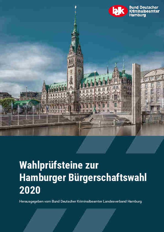 BDK Wahlprüfsteine zur Hamburger Bürgerschaftswahl 2020Traditionell hat der Bund Deutscher Kriminalbeamter, Landesverband Hamburg, auch für die Bürgerschaftswahl 2020 alle in der Hamburgischen Bürgerschaft vertretenen Parteien zu kriminalpolitischen Themen und unseren gewerkschaftlichen Forderungen befragt. Die Antworten der Parteien möchten wir hiermit präsentieren. Den in Hamburg wahlberechtigten Kolleginnen und Kollegen mögen sie bei ihrer Wahlentscheidung behilflich sein, den übrigen eine generelle, berufsbedingte politische Orientierung bieten. Für die nachstehenden Antworten zeichnen die Parteien selbst verantwortlich. Diese spiegeln nicht die Meinung des Bund Deutscher Kriminalbeamter, Landesverband Hamburg, wider. Allerdings werden wir die Umsetzungen der parteilichen Ankündigungen in gewohnt kritischer Weise begleiten! Angemerkt sei an dieser Stelle, dass die Reihung der nachstehenden Antwortbeiträge entsprechend der aktuellen Sitzverteilung in der Hamburgischen Bürgerschaft erfolgte. Bleibt an dieser Stelle nur noch der demokratische Appell: Liebe Kolleginnen und Kollegen, „Bitte geht wählen!“.http://217.113.45.228:8081/bdk/der-bdk/was-wir-tun/aktuelles/bdk-wahlprufsteine-zur-hamburger-burgerschaftswahl-2020-1http://217.113.45.228:8081/bdk/der-bdk/was-wir-tun/aktuelles/bdk-wahlprufsteine-zur-hamburger-burgerschaftswahl-2020-1/@@images/image-1200-53290bf3da7265541768e683cb843830.jpeg