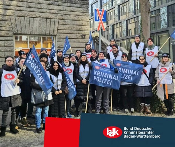 (BDK-Tarifbeschäftigte im Streik - aktive Beamtinnen und Beamte demonstrieren mit - Ruheständler sind mit dabei! (Bildquelle: BDK BW))